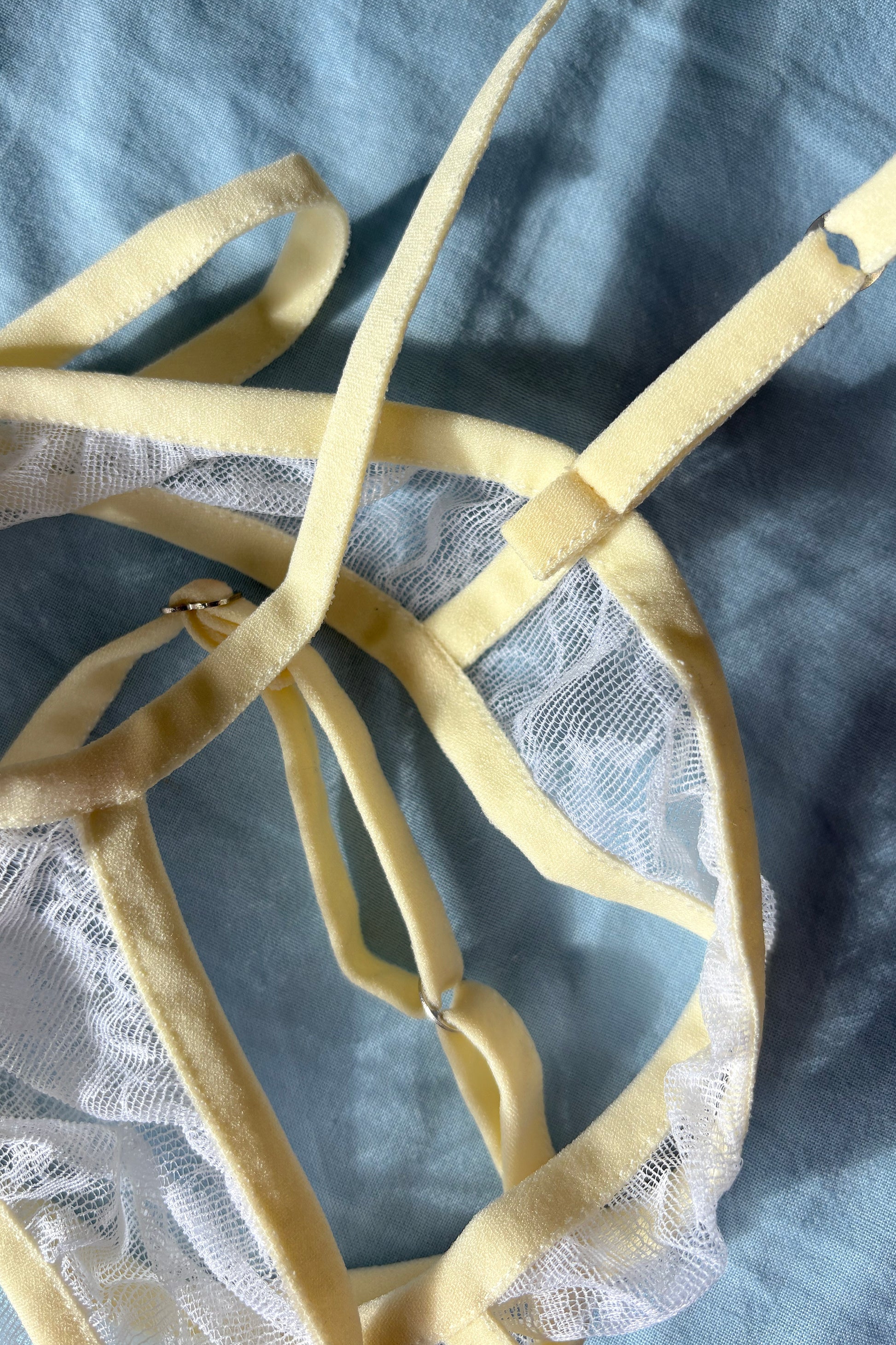 The wrap bra returns in a delicate, flower-patterned lace fabric. This bra will embrace your shape while feeling comfortable all day. The adjustable straps and back closure allow a personalised fit.